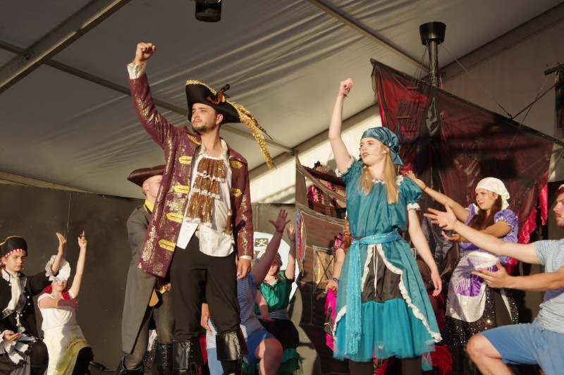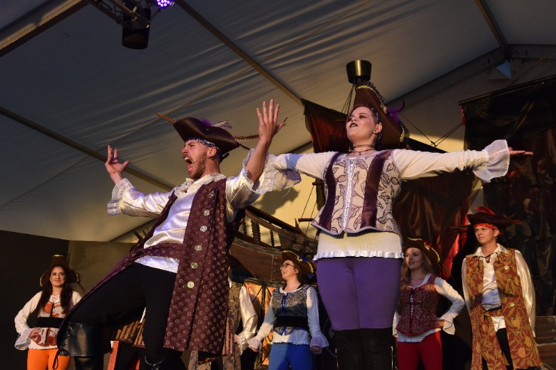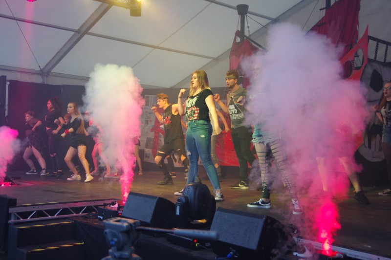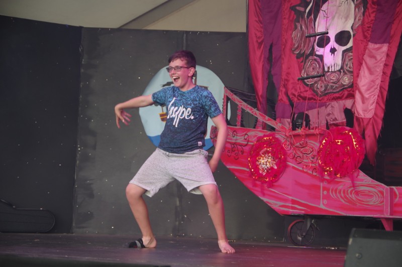 Following the success of the Chambo character at the last Chamboree we witnessed its return as a pirate with a three-part show on stage entitled “the story of Chambo – the legend of the ninth piece of eight” devised and written by Nick Hirst. The team of young people on stage performed this three-part saga where we saw the evil villain Captain Corrupt (Collette McManus) try to steal the pieces of eight in order to take over the seven seas, but fear not. Captain Jack Chambo (Will Taylor) and his band of merry pirate buccaneers (members of Chester Gang Show cast) defeat Captain corrupt after being trapped in the underworld in our midweek performance by the creepy showman (Alex Dodd).