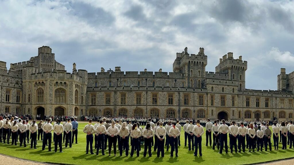 Planned by the King’s Scouts, the service celebrates Scouts values. This year’s service focuses on the theme of change. It takes place straight after the march in St George’s Chapel, and it’s a wonderful way to end the proceedings. Once the Queen’s Scouts have marched through the Upper, Middle and Lower Wards to reach the Horseshoe Cloister in front of the chapel, they’ll enter through the Great West Door and the service begins.